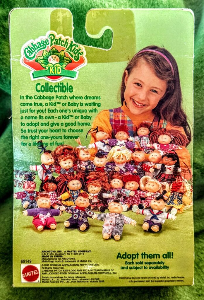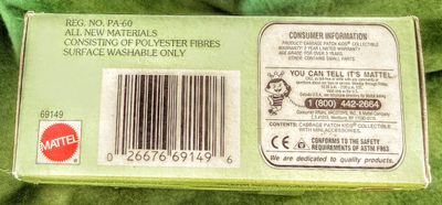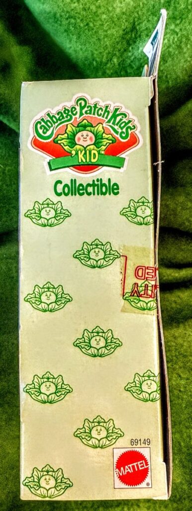 A collectible Cabbage Patch Kids doll for ages over 3 years. New old stock with original price tags from Ames, a store that went out of business many years back. Even the original Mattel seal is unbroken and in place! A collector’s dream!