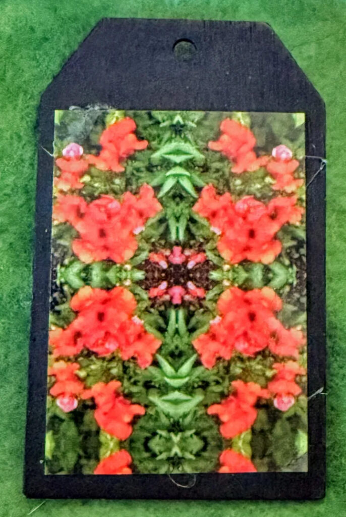 Red Flower Kaleidoscope Small Wooden Ornament Wooden ornament featuring an exclusive Black Cat Studios manipulated photo on the front and back. Fun, festive, and affordable makes the perfect gift for everyone on your list!! $2.50